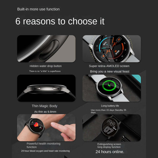 LA17 Smart Watch New Round Screen AMOLED Women's Health Heart Rate Blood Oxygen Sleep Monitoring Exercise Step Meter